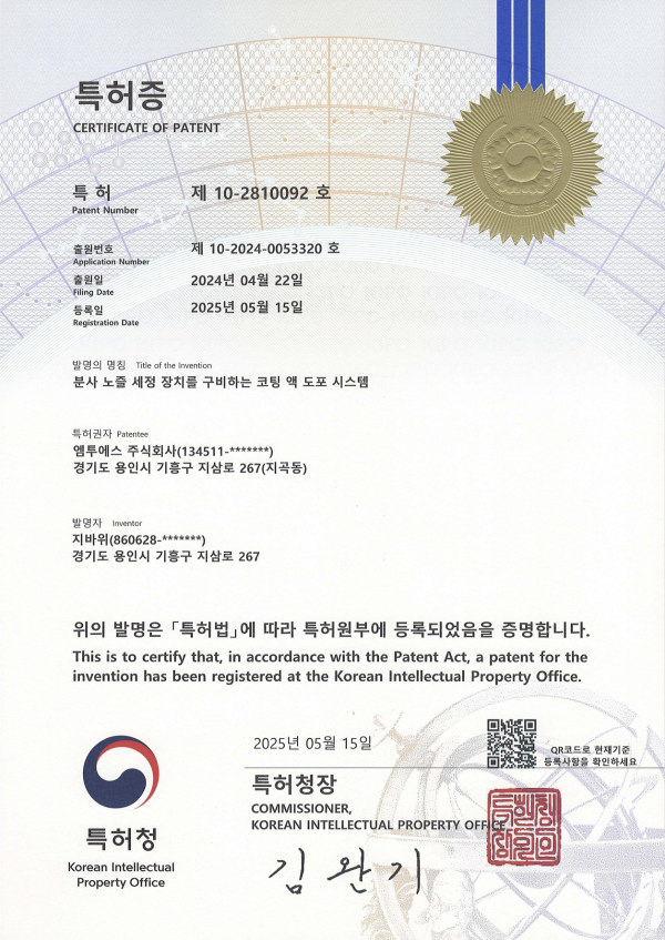 특허증 10-2810092-0000 페이지 정보 작성자 최고관리자 댓글 0건 조회 9회 작성일 25-09-25 09:09 목록 본문 특허증 10-2810092-0000 이전글특허증 10-2810091-0000 25.09.25 다음글특허증 10-2828818-0000 25.09.25 댓글 0 댓글목록 등록된 댓글이 없습니다.