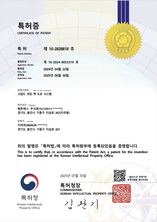 특허증 10-2828818-0000 페이지 정보 작성자 최고관리자 댓글 0건 조회 6회 작성일 25-09-25 09:09 목록 본문 특허증 10-2828818-0000 이전글특허증 10-2810092-0000 25.09.25 다음글특허증 10-2828820-0000 25.09.25 댓글 0 댓글목록 등록된 댓글이 없습니다.